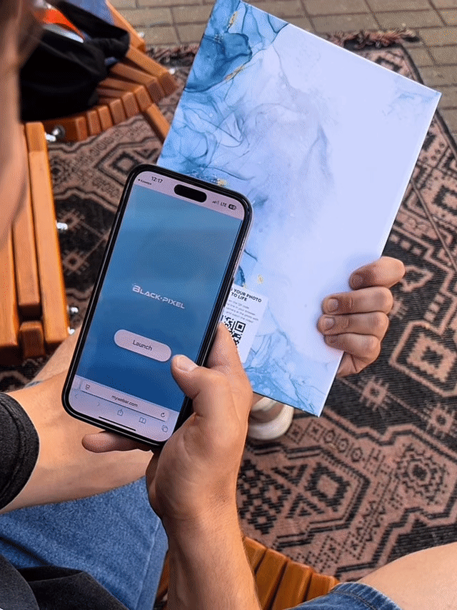 Each album includes a small QR code on the back. Just scan it with your phone, tap βLaunch,β and point your camera at a photo. Instantly, that picture turns into a video or plays a voice message. No apps, no logins β just pure magic.